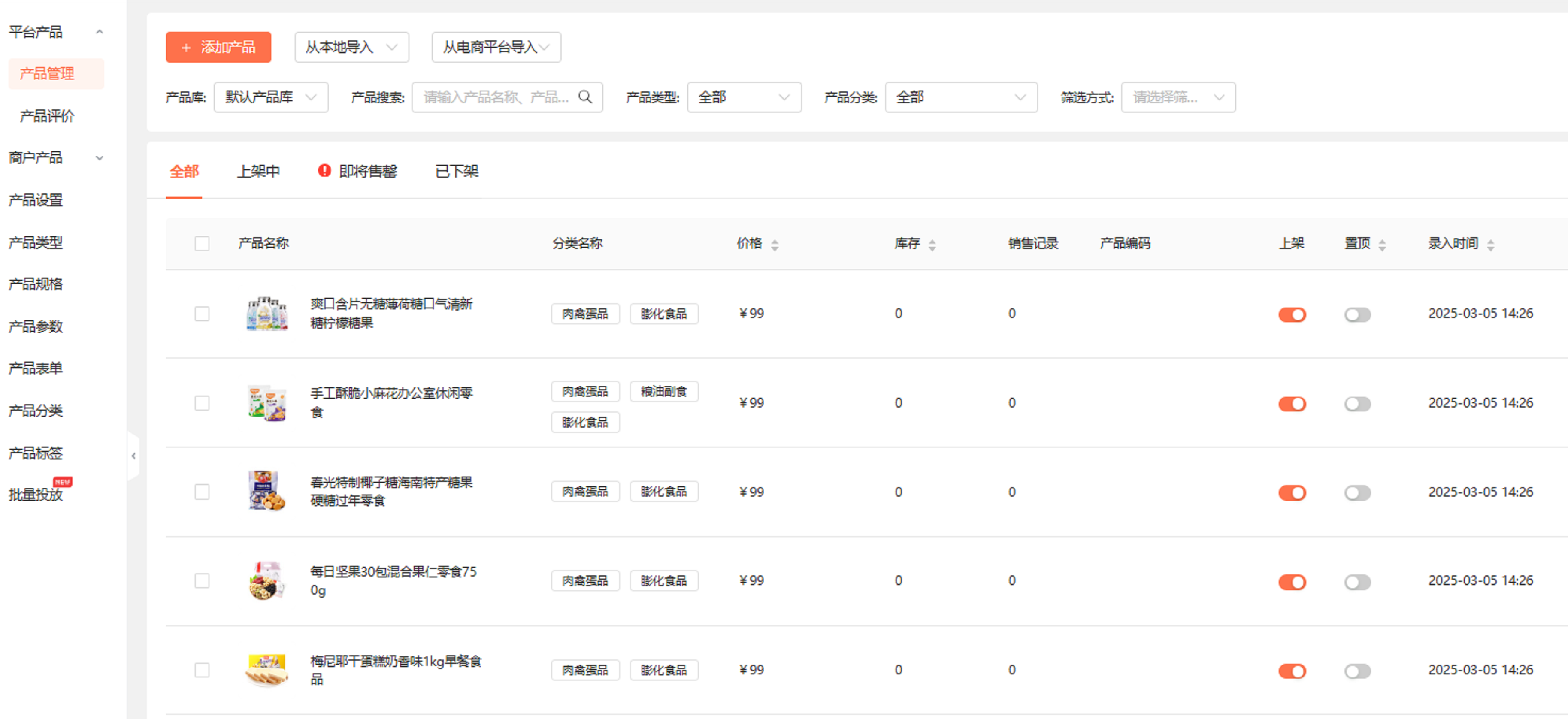 往往商城中的商品都是比較雜亂不好管理,那么我們利用這個平臺中的“產(chǎn)品管理”,便可以較有條理地來去整理、上下架商城內(nèi)的商品啦!