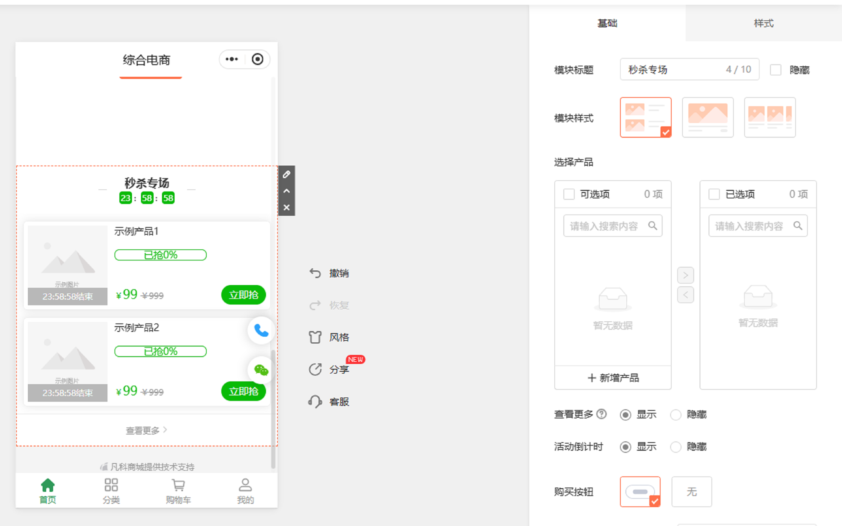 比如,你想進(jìn)一步推廣最近店鋪新推出的營銷活動,那便可以在商城上添加上相應(yīng)的“營銷模板”啦~選擇后,你能夠去編輯其樣式、圖片,還有設(shè)計(jì)按鈕哇!