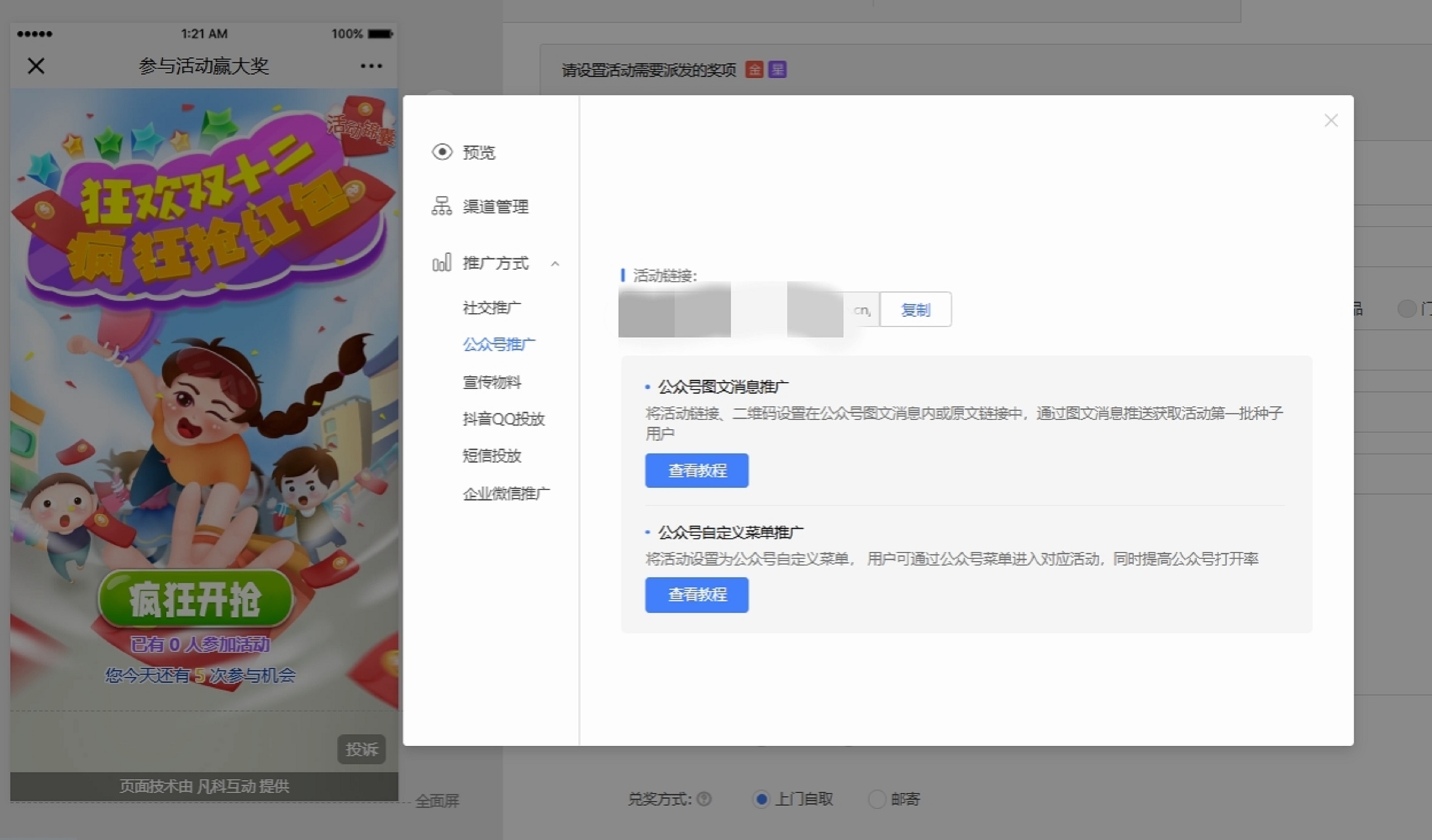 在以上都設置成功之后,我們便可以點擊“預覽與發(fā)布”來發(fā)布這次雙十二的活動抽獎活動啦~