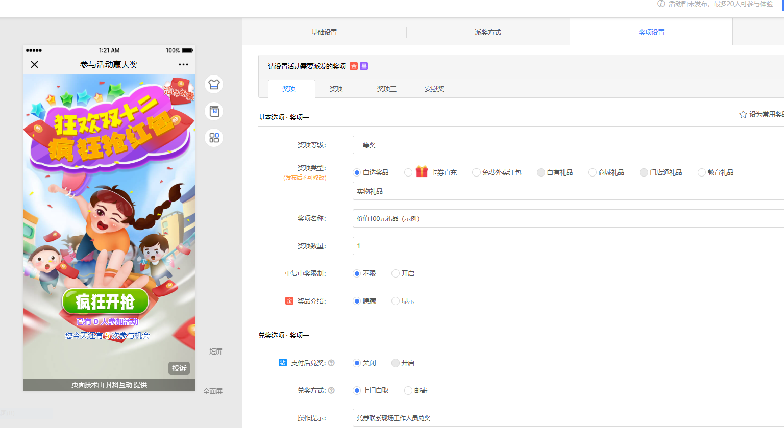 點擊“創(chuàng)建”后,我們便可以對雙十二的活動抽獎展開設置工作嘍!