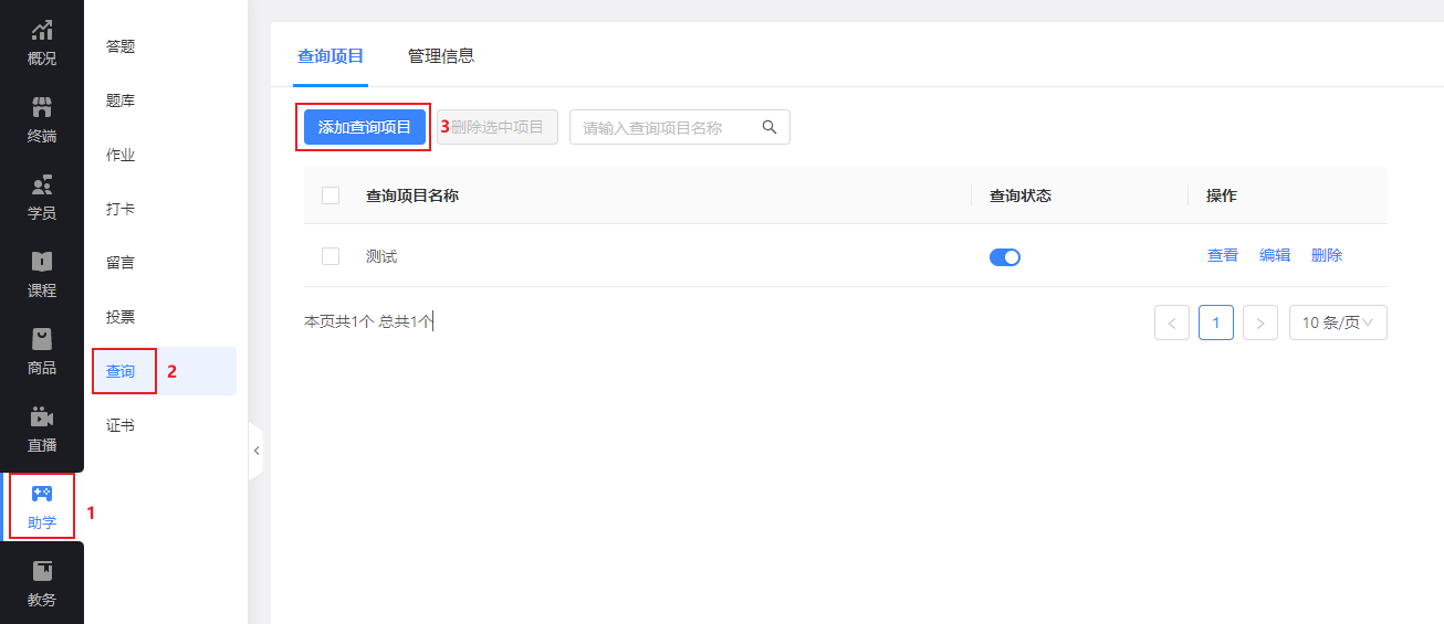 接下來,在“查詢項目”一欄選擇“添加查詢項目”,就可以進入查詢項目基礎(chǔ)信息設(shè)置頁面了。