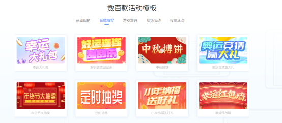 我們來到首頁后,進(jìn)入凡科互動的模板庫,這里的模版有很多,適配不同的行業(yè),根據(jù)你自己的需求進(jìn)行選擇,想找快一點的話,不用一個個翻,它行業(yè)、類型、功能分類,一目了然,或者在搜索欄里,輸入抽獎兩個字進(jìn)行搜索,這樣能快速定位,找到更符合你小程序主題的模板。